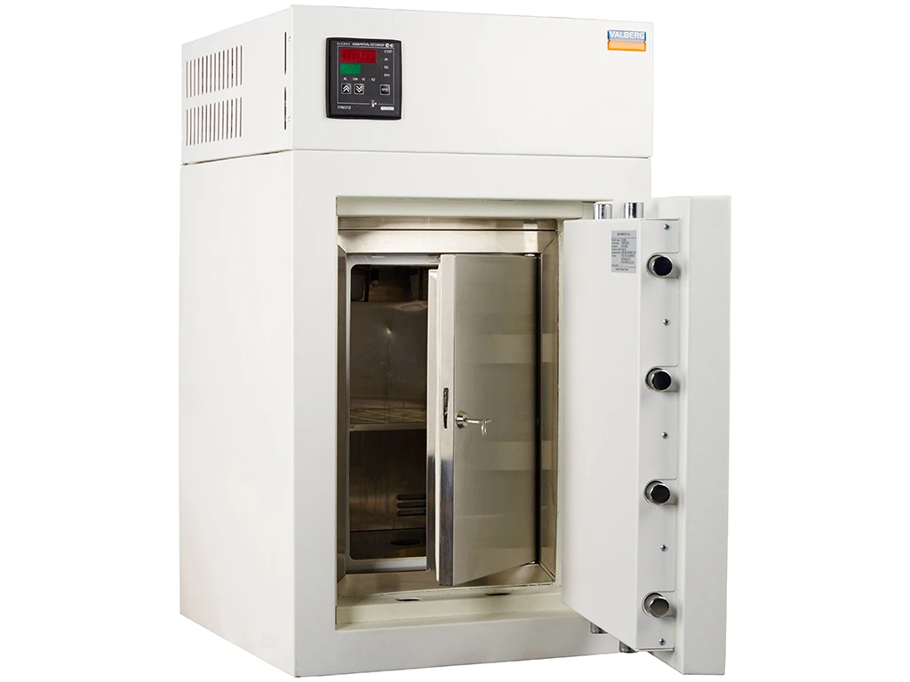 Рабочая камера сейфа холодильника Valberg TS выполнена из нержавеющей стали и оснащена отдельной дверцей.